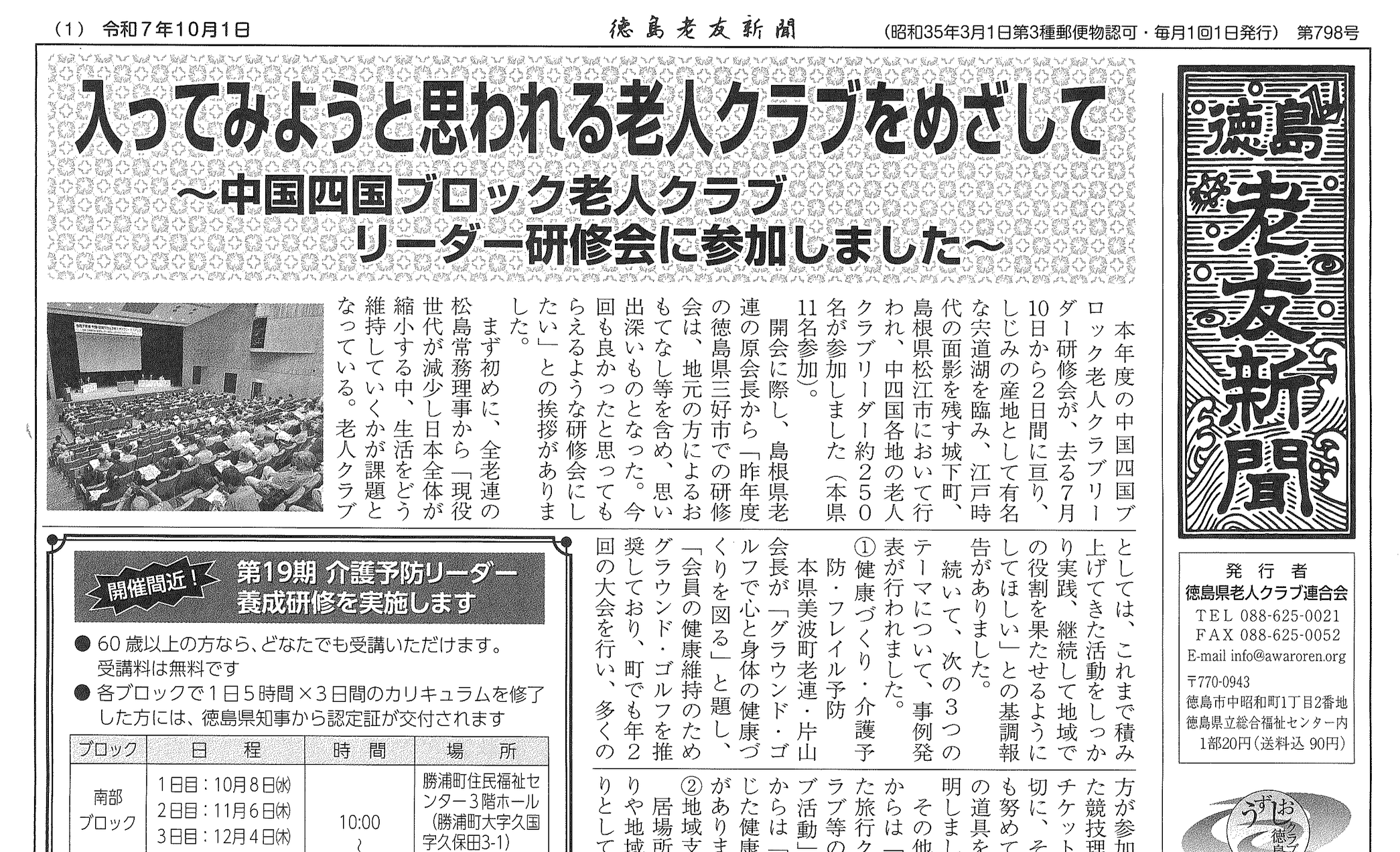 第798号令和7年(10月1日)入ってみようと思われる老人クラブをめざして〜中国四国ブロック老人クラブリーダー研修会に参加しました〜